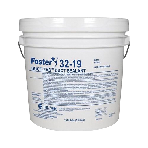 Foster Duct-Fas™ 32-19 Series Duct Sealant, Size: 1 gal, Color: Gray, Temperature Rating: 40 to 100 deg F, Container Type: Pail, Form: Liquid, Odor: Mild Sweet, Composition: 1 to 5% Titanium Dioxide, 0.1 to 1% Crystalline Silica, 0.1 to 1% Cristobalite, Specific Gravity: 1.4, Boiling Point: 210 deg F, VOC: 24 g/L, Shelf Life: 12 months, Coverage: 50 sq-ft/gal at 0.032 in Wet Film Thickness with Brush, Dry Time: 1 hr Touch, Application Method: Brush, Trowel, Glove, Caulking Gun, Power Extrusion