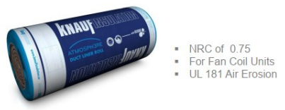 Duct Liner is intended for use in commercial, institutional, industrial, and residential construction as thermal and acoustical insulation of heating air-conditioning and interior of dual temperature ductwork, air handling equipment, and plenums operating at air-velocities up to 30 m/s (6000 FPM) and temperatures up to 121°C(250°F).